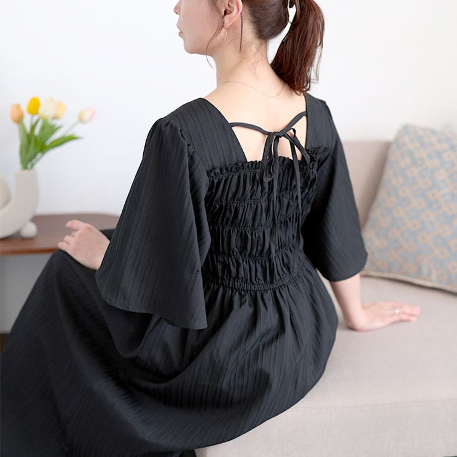前後スクエア開きで、後ろ側はリボンが付いており、360度きれい見せ。