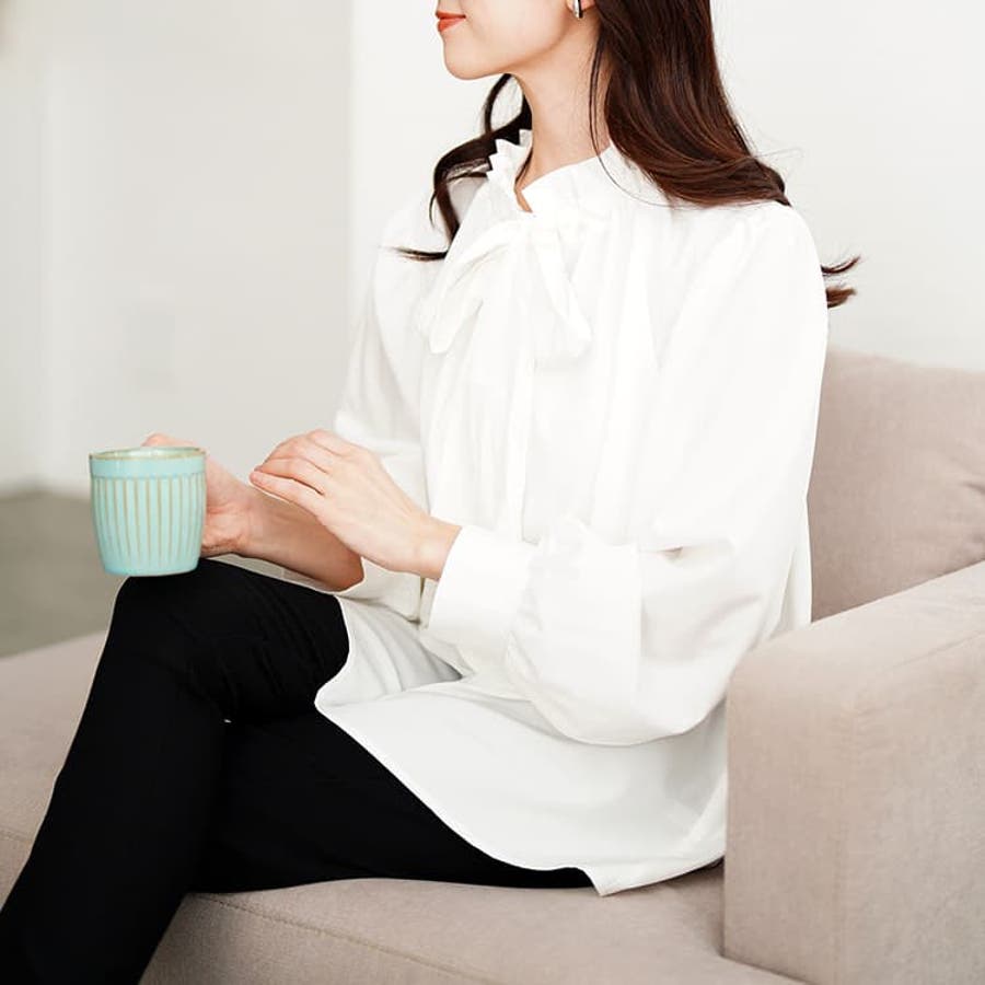 リボンタイフリルカラーブラウス