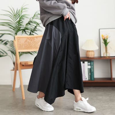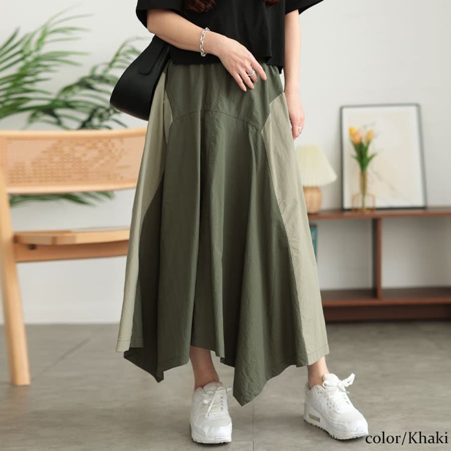 歩くたびに雰囲気増す、配色イレヘム変形スカート。