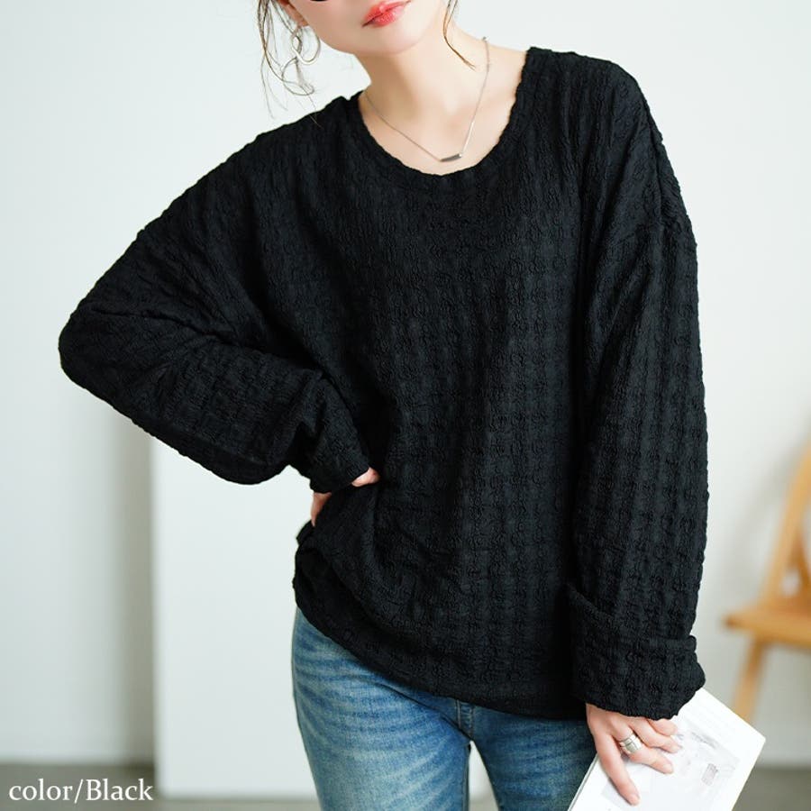 立体感あるテクスチャーで洒落度アップするリップル生地カットソー。凹凸感のあるリップル生地で、シンプルながらも、こなれ感高まる一枚。ゆったりとしたシルエットは、ラフな印象を演出し、カジュアルスタイルにぴったり。定番的なカットソーをリップル生地でアップデートさせ、コーデを選ばない万能さが嬉しいアイテム。