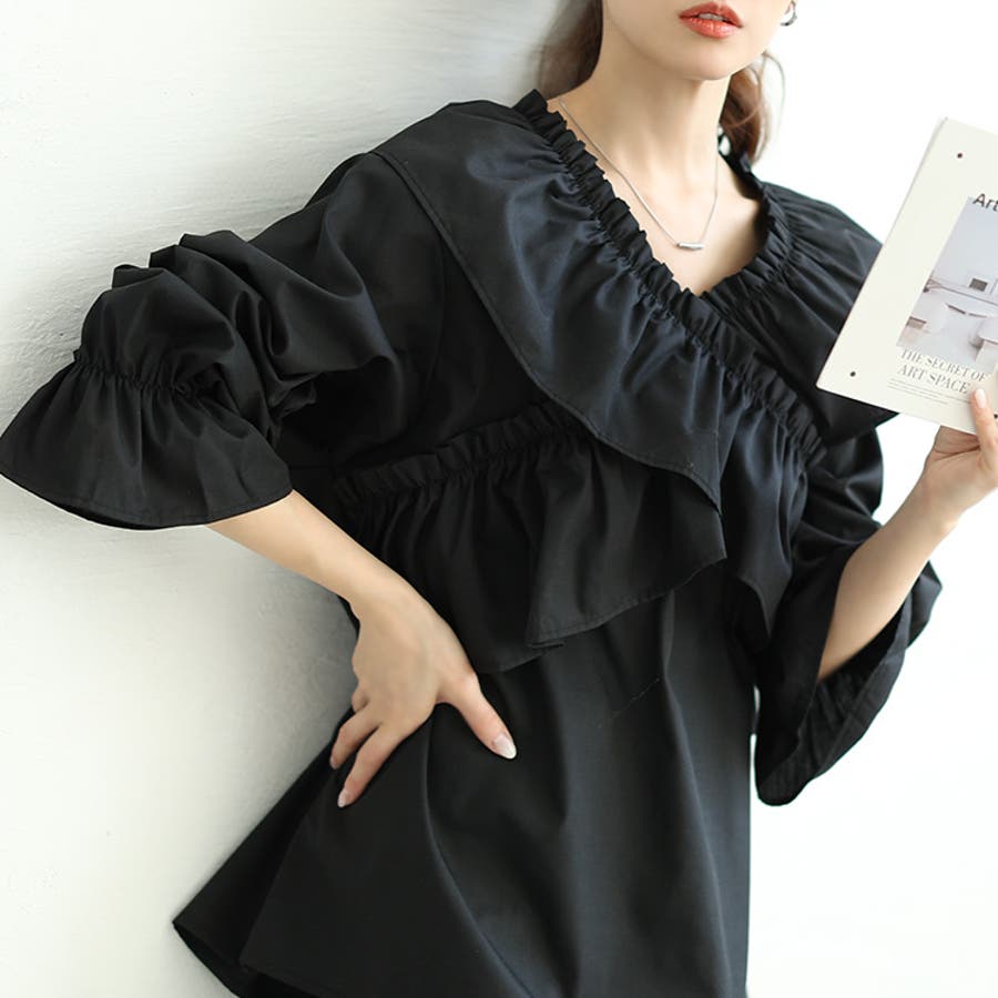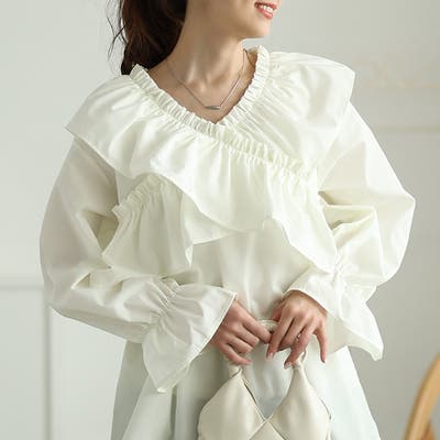 フリルが作るVネックでパッと華やか小顔見せ