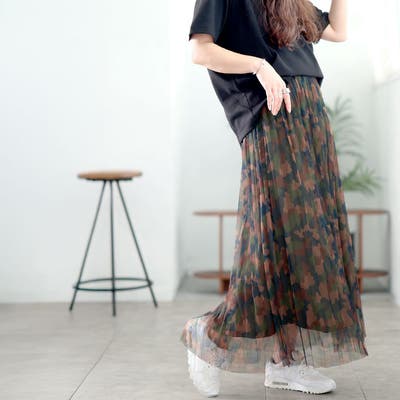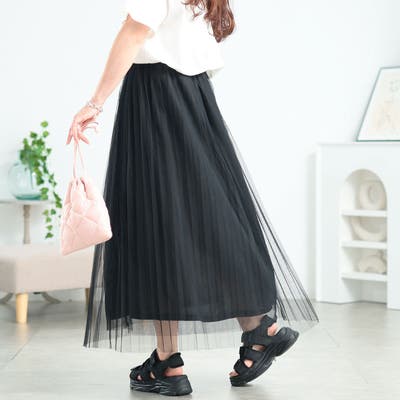 ふんわりチュールを重ねたロング丈のプリーツスカートです。