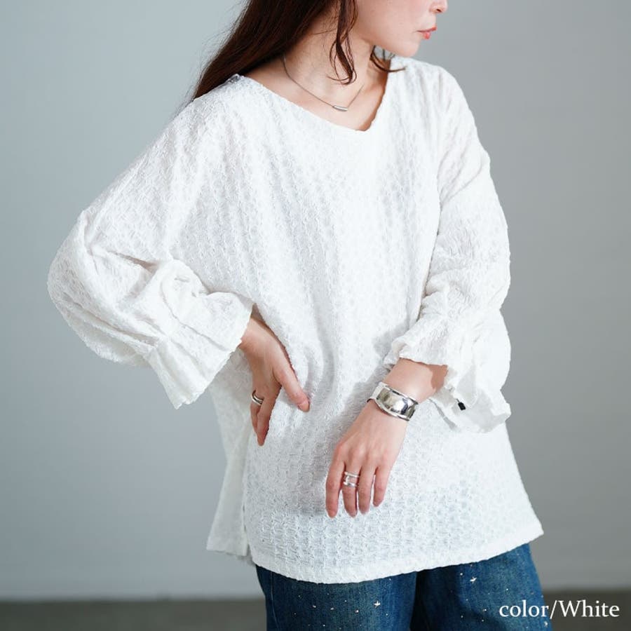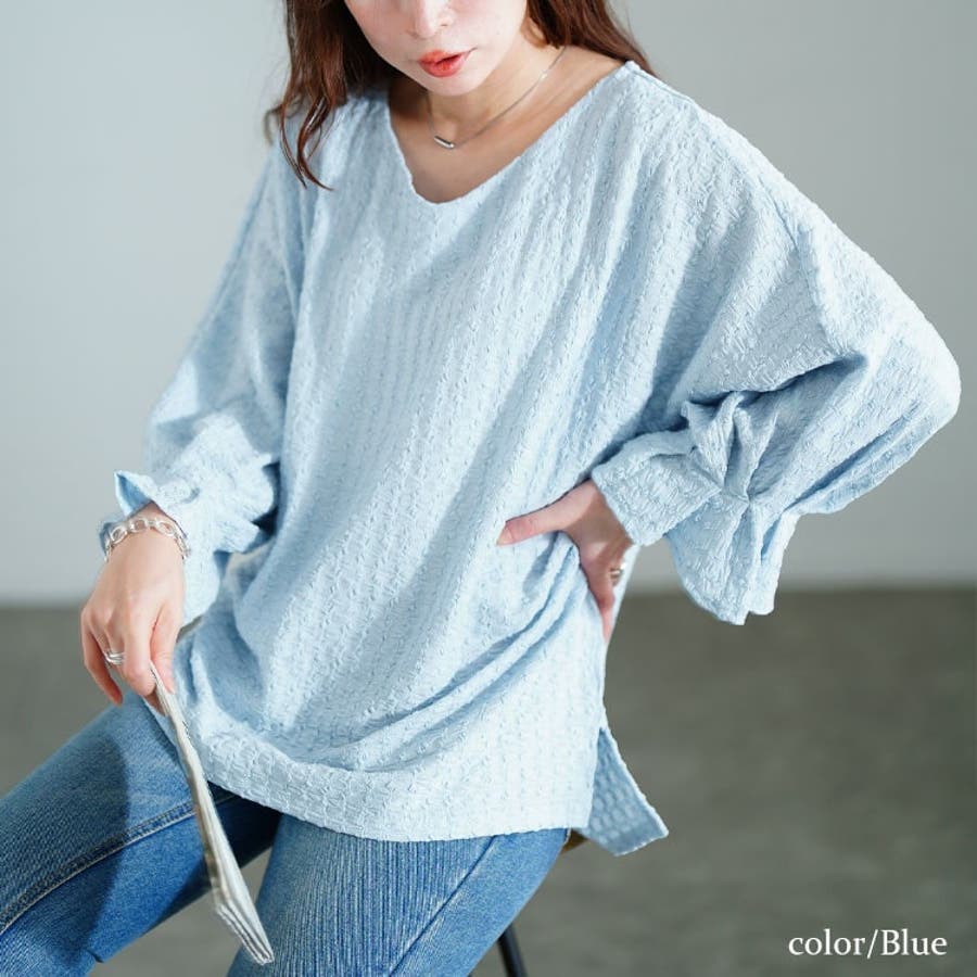 ぽこぽこと表面に凹凸のあるふくれカットソー生地の立体模様が高見え質感でお洒落を彩ります!