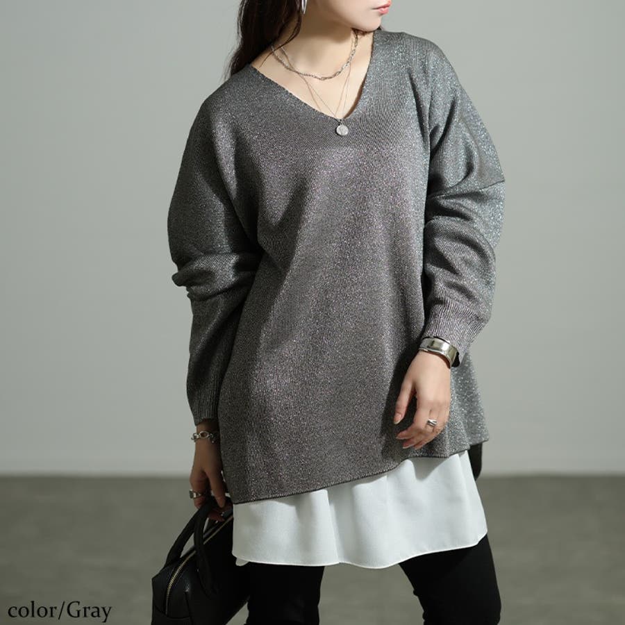Vネックテールカットドルマンラメニット