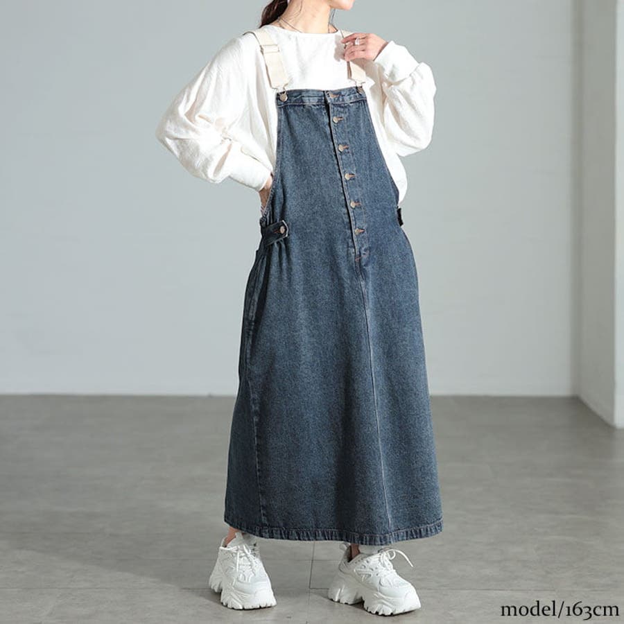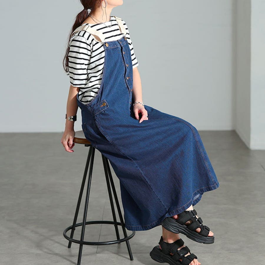 ストリートやボーイッシュな着こなしに映えるコットンデニムサロペットスカート。