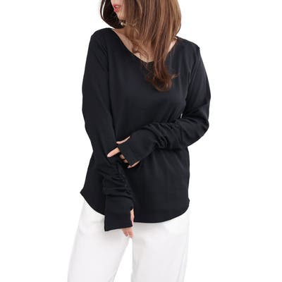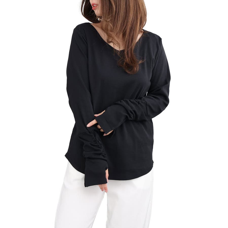 袖丈は長めで指空きのデザインです。1枚ではもちろんニットの下に着て袖口だけ見せるなどコーデのバリエーションも増えますね☆