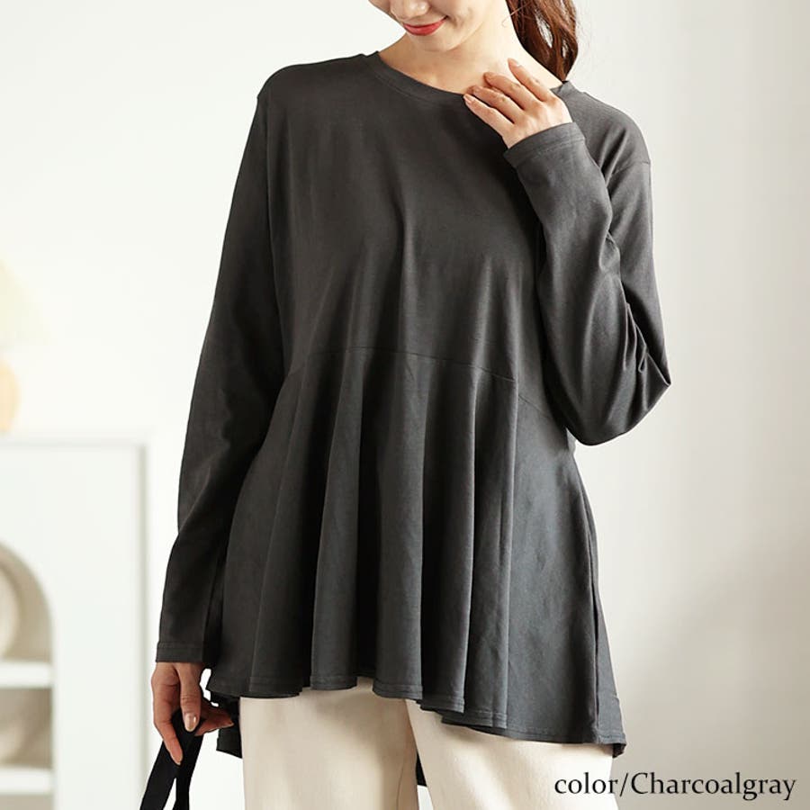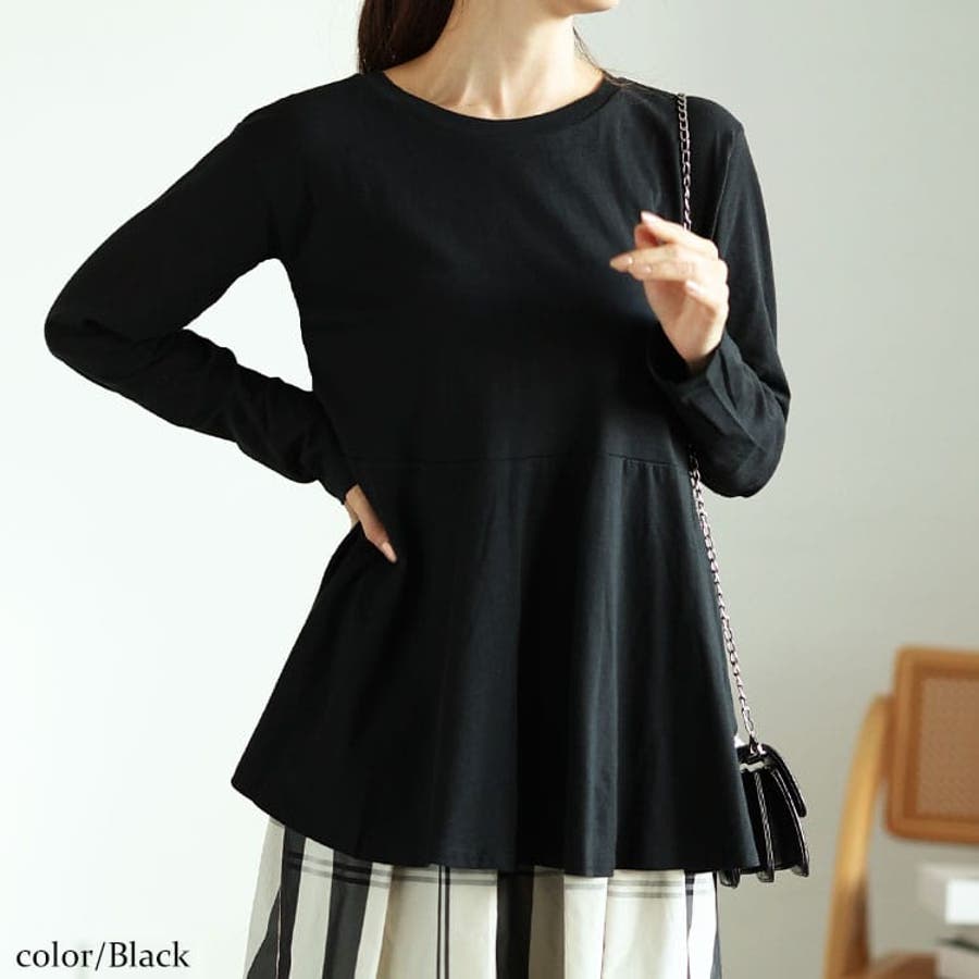 動くたびひらりと素敵、ぺプラムコットンカットソー。