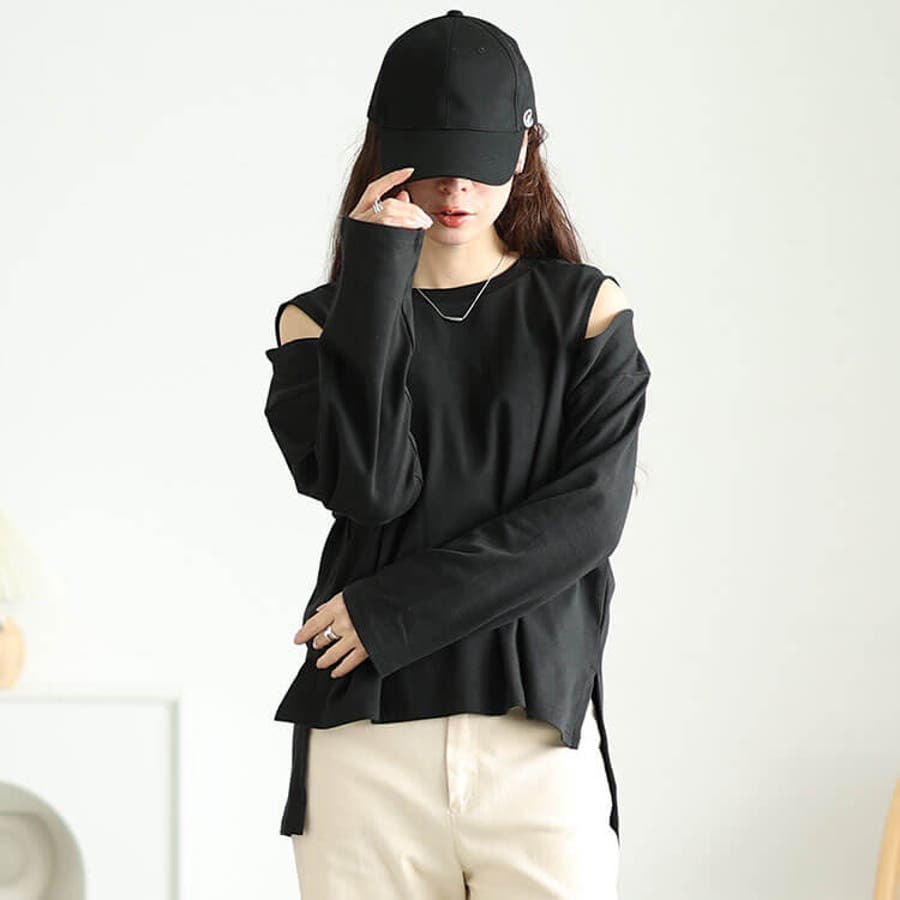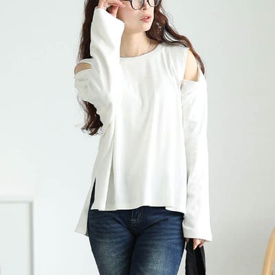 オープンショルダーコットンカットソー