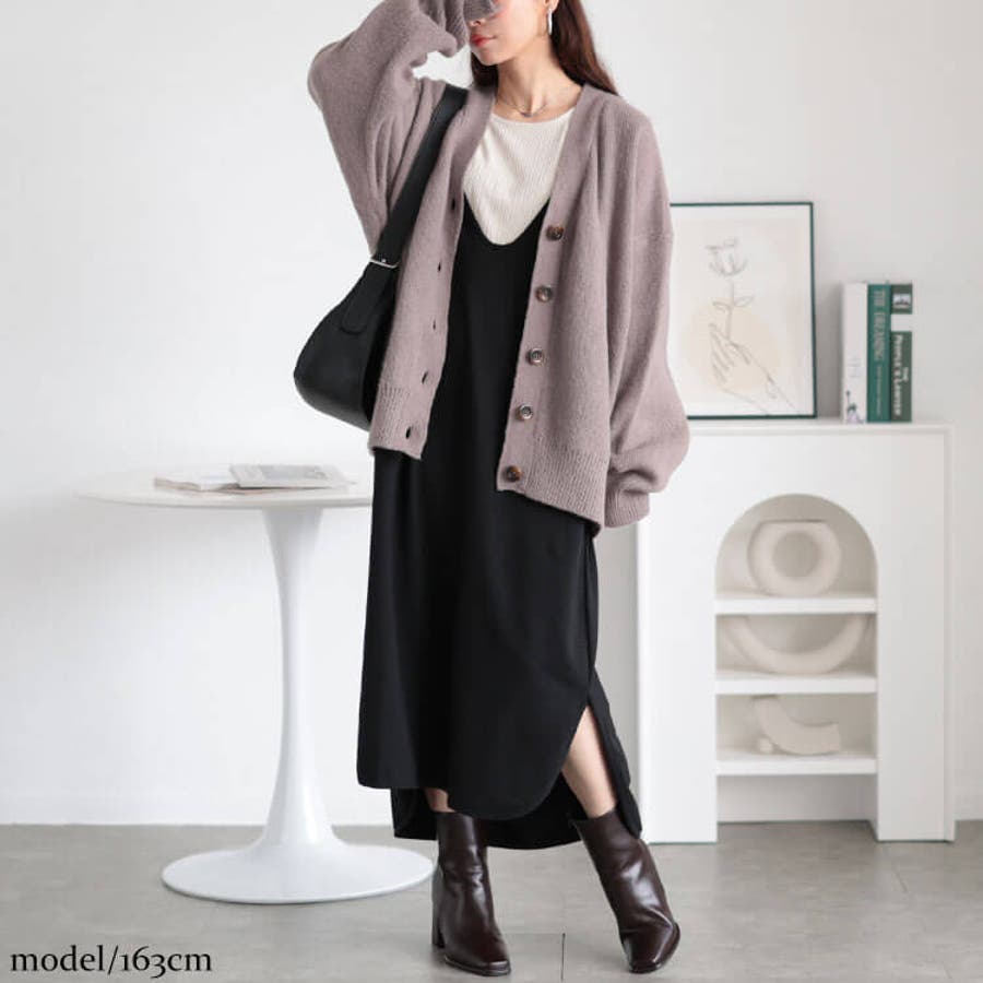 ゆとりのある胸元&脇ぐりでどんなインナーも合わせやすくロングシーズン大活躍!
