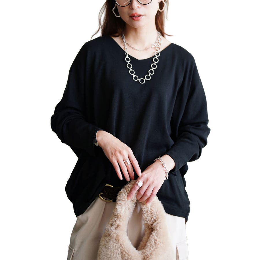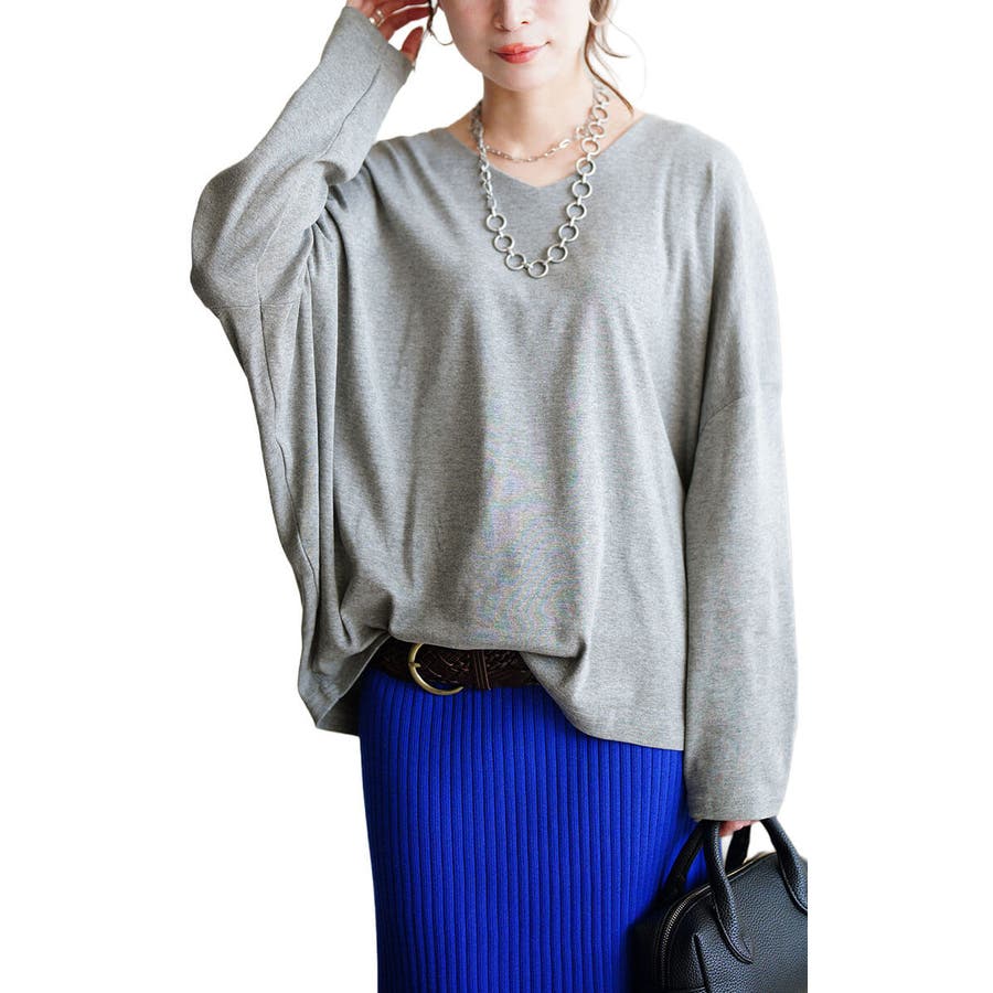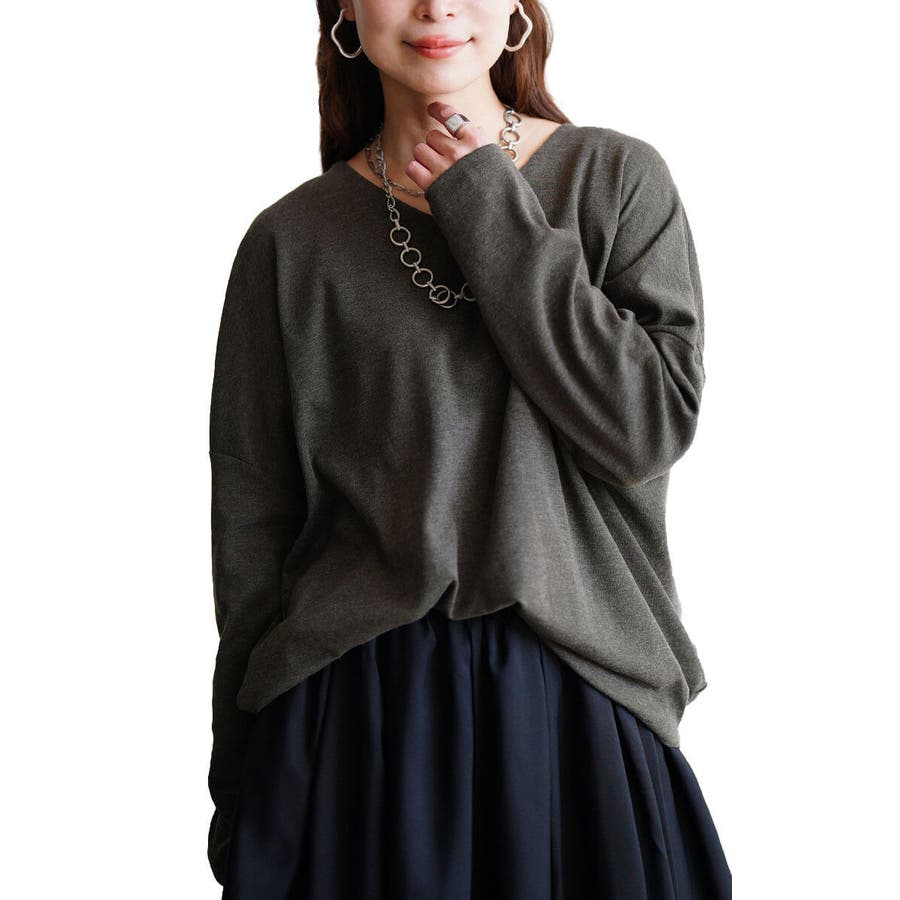 程よくゆとりのある小顔見えするVネックが大人の抜け感を演出。