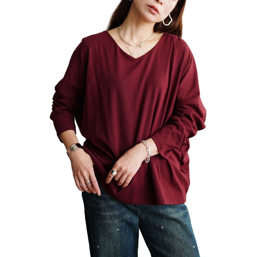 Vネックワイドドルマンプルオーバー