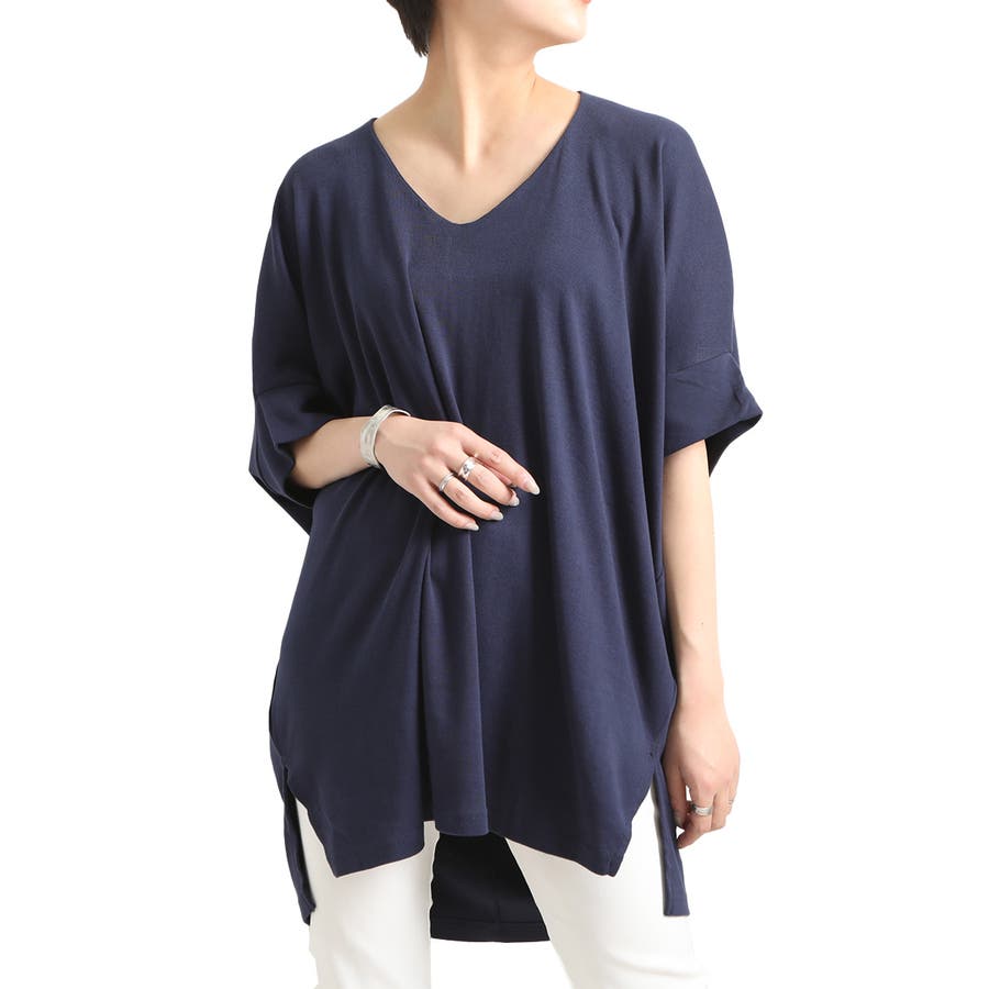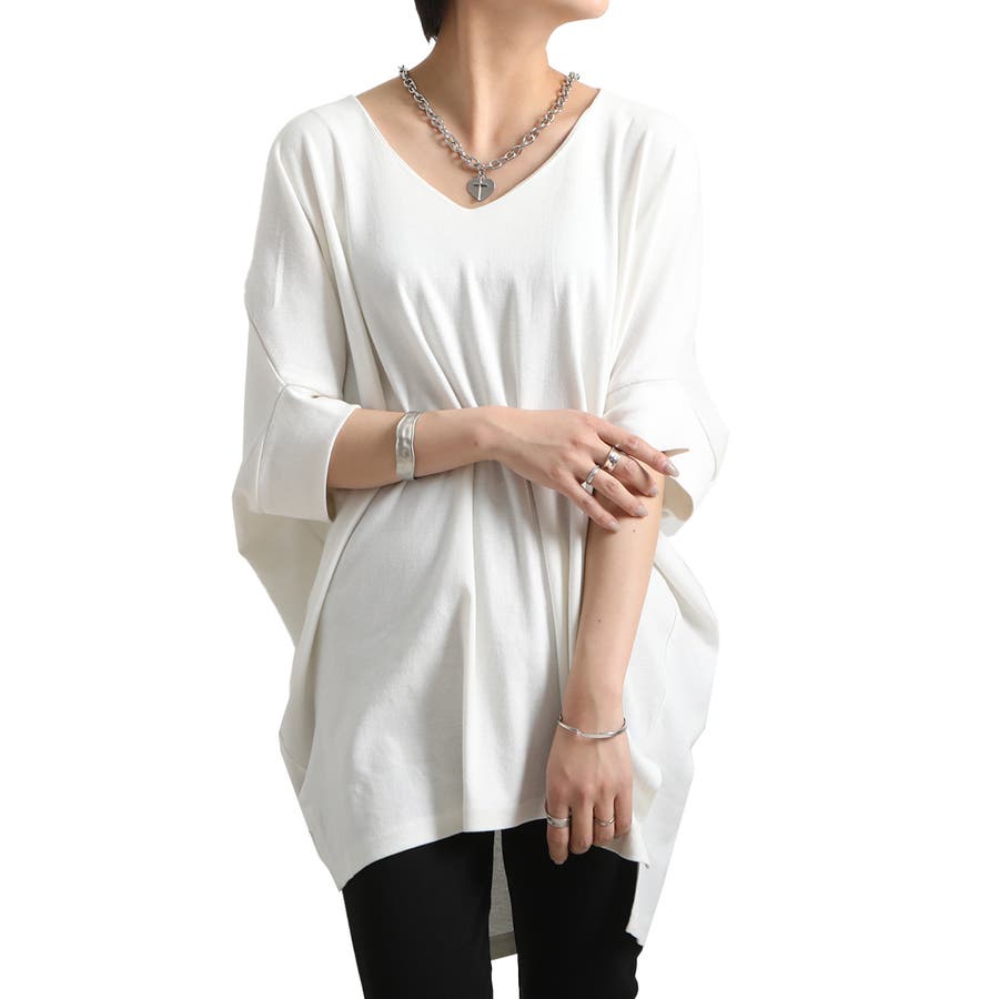 コットン100%の生地が肌触りの良いプルオーバー。ドルマンスリーブのシルエットと身頃にたっぷり余裕を持たせているので涼しくてラクチンに過ごせます。身体のラインも拾わないのが嬉しいポイント。