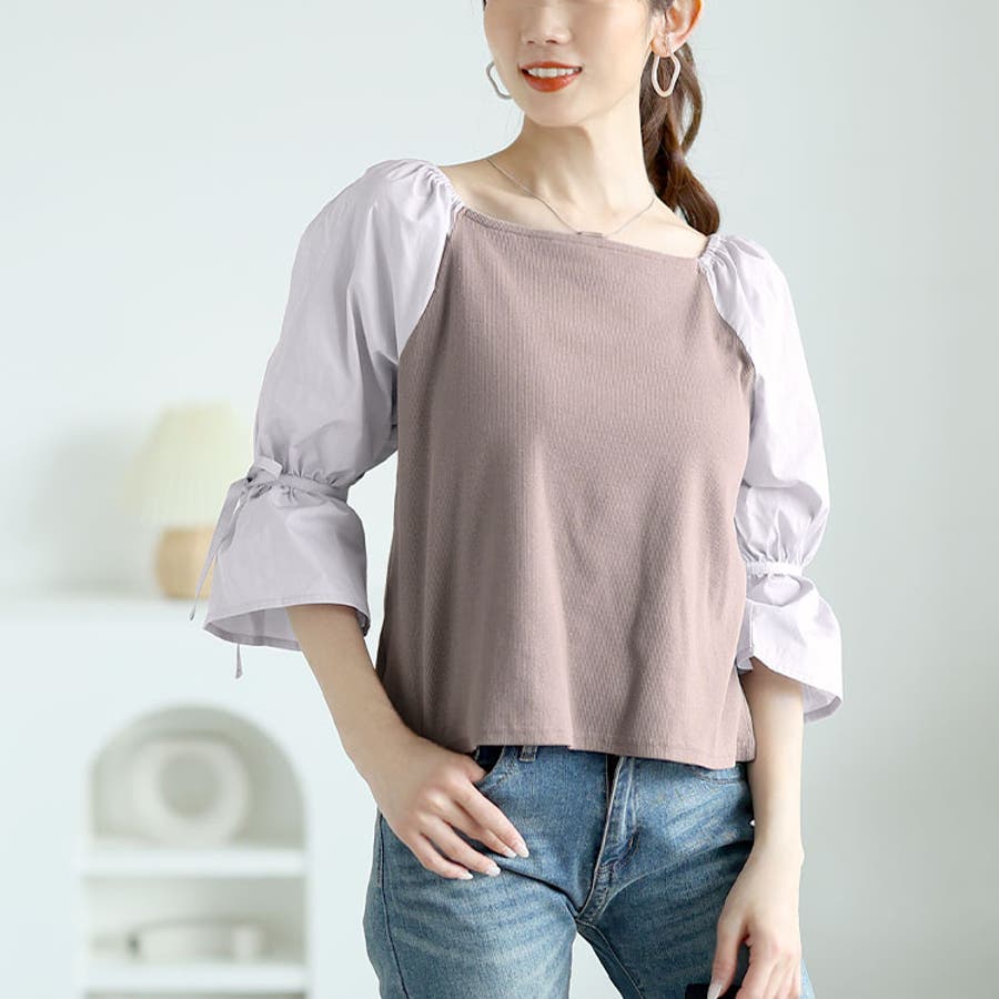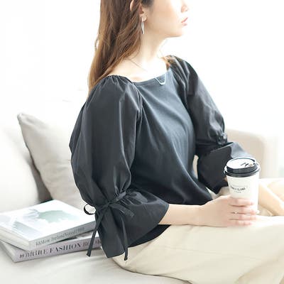 異素材リボンキャンディスリーブトップス