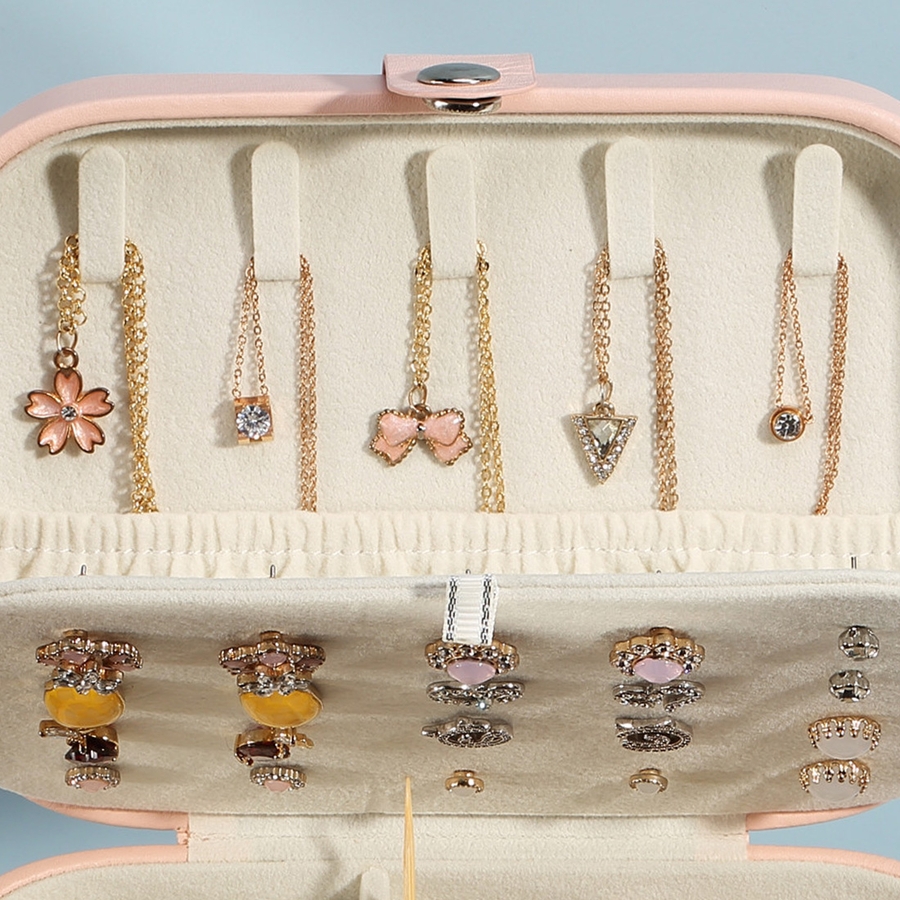 機能:2層構造、ネックレス収納×5、ピアス収納×20、指輪収納×6層、自由収納×3