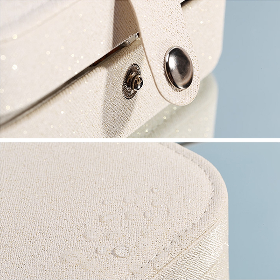 内部は2段構造となっており、見た目に反して大容量!アクセサリーごとに収納スペースが設けられており、中身が散らばる心配もございません。