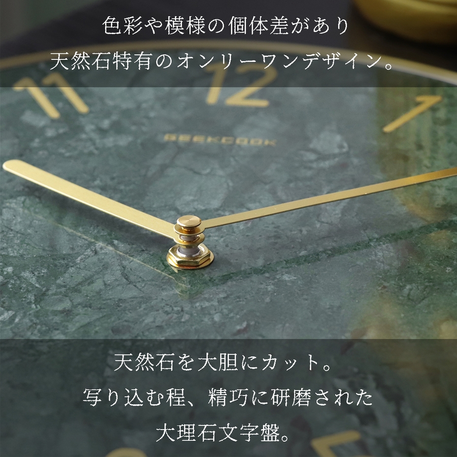 天然大理石の文字盤とゴールドフレームでラグジュアリーな雰囲気の掛け時計。