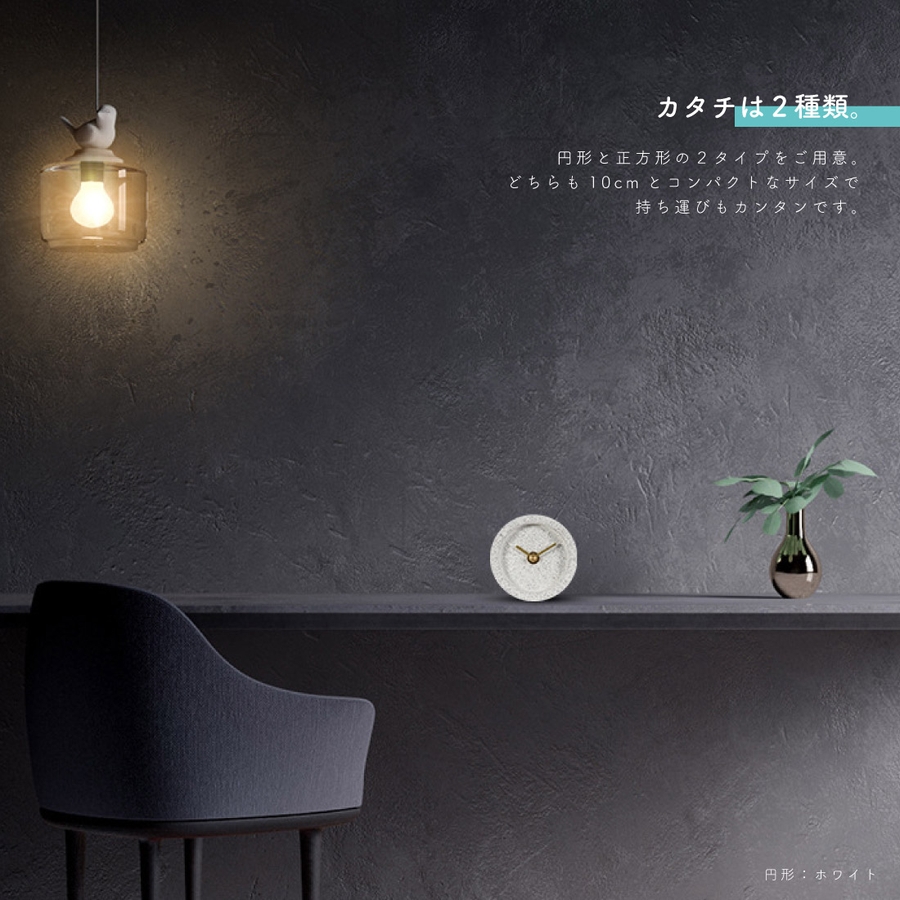 STONE Table Clock 素材に人口石を利用した珍しいデザインの置き時計。なめらかな質感と無機質な印象がインテリア映えするお洒落な時計です。