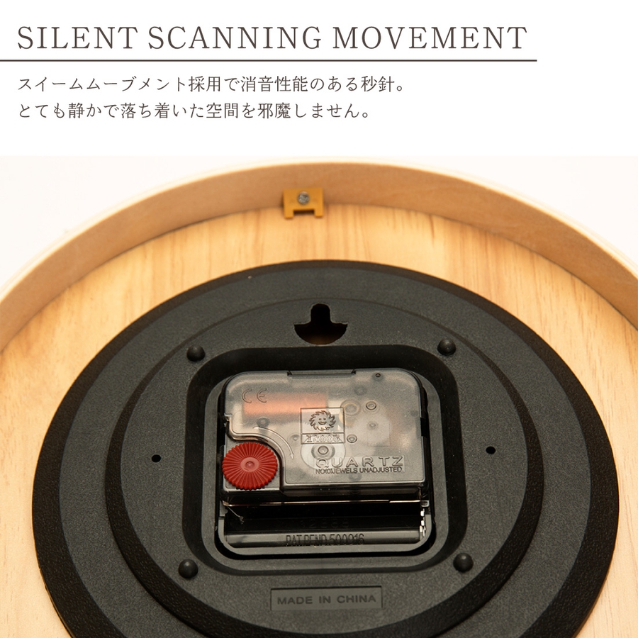 スイームムーブメント採用え消音性能のある秒針。とても静かで落ち着いた空間を邪魔しません。