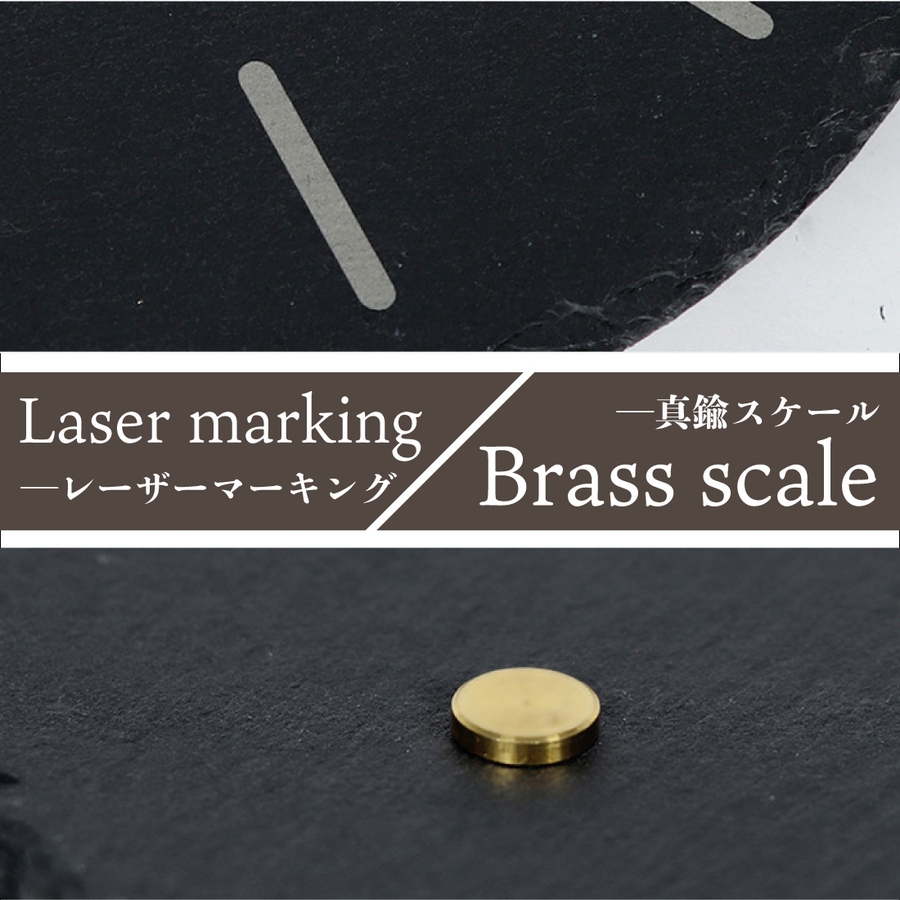 文字盤には2タイプご用意。シンプルなレーザーデザインと上下左右に真鍮を埋め込んだ真鍮スケールデザイン。