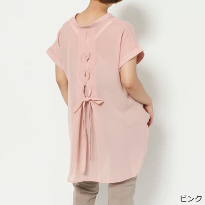 ロールアップ調のフレンチスリーブと抜き襟デザインがこなれ感をプラス♪気になるウエスト周りをカバーしてくれるチュニック丈が嬉しいポイント☆選べる2サイズ展開です◎