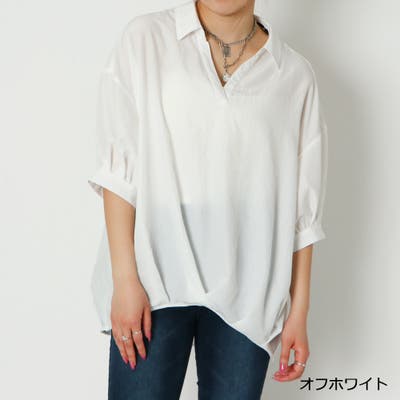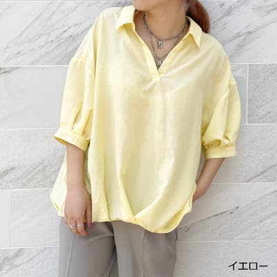 シャツ トップス 5分袖 スキッパー タケノコ 春 夏 2311034