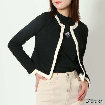 バイカラーでメリハリのあるインナー付き刺しゅうテレコカーディガンの登場★縦ラインを強調するデザインで自然にスタイルアップ♪着まわし力が高い万能デザインなので通学、通勤にも使えるおすすめアイテムです☆