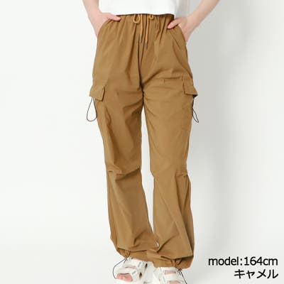 軽やかで張りのある風合いが春夏シーズンにぴったりなカーゴパンツが登場★光沢感の無いナイロン素材を使用し、スポーツ感が少なく幅広いスタイルにマッチ♪サイドのポケットがアクセントを効かせ、裾とポケットにはお好みに合わせてアレンジ可能なドローコードを施した、本格仕様のミリタリームードが存在感を発揮◎スウェットやトレンドのシアーカットソーから、フェミニンなブラウスまでさまざまなトップスとのスタイリングが楽しめます☆