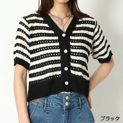 トレンドの透かし編みと爽やかな印象のボーダー柄がシーズン気分を盛り上げてくれるカーディガンが登場★ボタンを留めてトップスとしてはもちろん、ラフにボタンを開けて羽織りとしても活躍♪ショート丈なのでハイウエストのボトムや、ワンピースなどと合わせるとスタイルアップ出来てオススメ◎とっても柔らかく肌当たりのいい素材なのでストレスフリーで着ていただけます☆