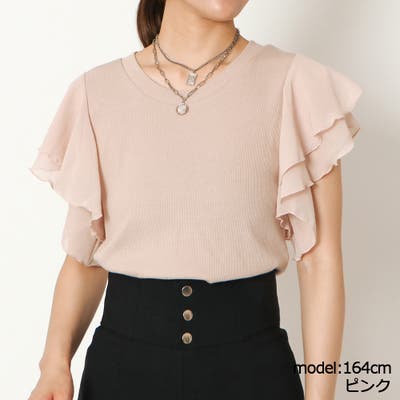 ボリュームのある袖フリルデザインが可愛いトップスが登場★細やかなリブ素材で、全体をすっきりと見せてくれる♪ボリューム感のある袖フリルデザインは、二の腕華奢魅せ効果も◎シンプルなデザインなのでどんなコーディネートとも相性抜群です☆