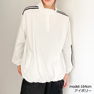 袖に施したラインがスポーティーなエッセンスを加えるジッププルオーバーが登場★裾のドローコードで簡単にシルエットを変えられる♪肩から袖にかけて入ったラインと、スタンドネックがデザインのポイント◎パンツはもちろんのことガーリーなスカートをあわせて韓流ファッションのような雰囲気が完成する1着です☆
