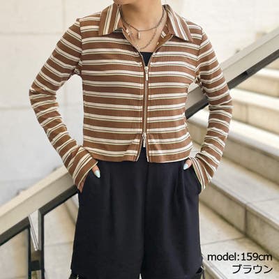 カーディガン トップス テレコ リブ ジップ ボーダー 春 秋 2333947