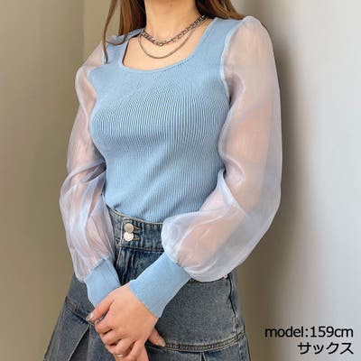 シアースリーブが女らしいニットプルオーバー。顔写りがすっきりと見えるスクエアネックや、程よくボディにフィットするフェミニンなデザインがポイント。デニムパンツやカーゴパンツなどカジュアル要素のボトム合わせは甘さのあるスタイリングにアクティブな印象を与えてくれます。スカート合わせで可愛いコーデオススメ◎