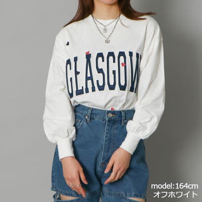 カレッジロゴをフェルト&ステッチデザインにしたロングT。散りばめられたハート刺繍が可愛い1枚。ラフなオーバーシルエットが今年っぽいアイテム。お家時間を快適に過ごすルームウェア、ちょっとしたお出掛け時のワンマイルウェアとしても大活躍。