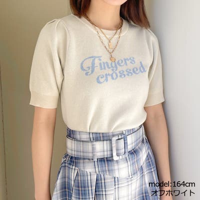 レタリングがアイキャッチなニットトップス。ぽわっとしたパフスリーブが大人キュートな印象を与えてくれます♪なめらかで軽いニット素材はシーズンモードをアップ。スカートともパンツともバランス良く合わせられるアイテムです★