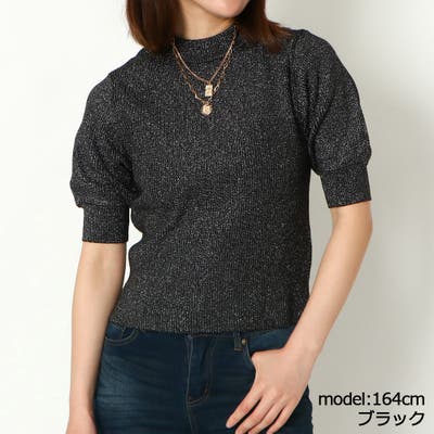 細かなラメがトレンド感のあるリブニットトップス。ハイネックとふくらみのある袖で華奢見えが叶います★キレイめ女っぽコーデにオススメです!