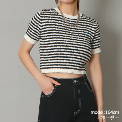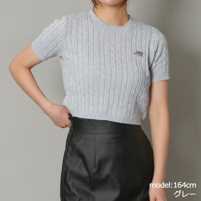 ロングシーズン着用可能なショート丈のケーブル編みニット。刺繍がポイントのニットトップス。ショート丈なのでどんなボトムス合わせでもすっきりとした印象に。足元にブーツを合わせることで韓国風コーデにも。