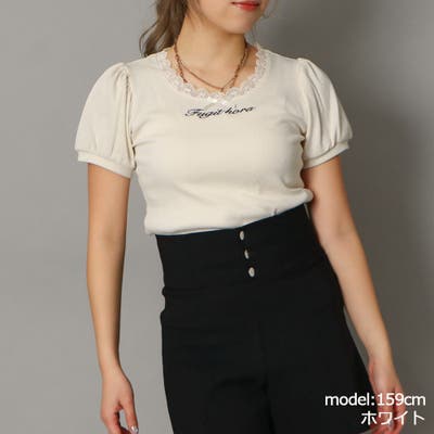 首元のレースが可愛いパフスリーブニットトップス。定番に使えるリブ素材とフェミニンな雰囲気が春夏に大活躍するアイテムです。スカートと合わせるのももちろん、甘すぎないデニムと合わせたコーディネートもオススメです★