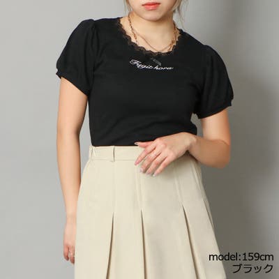 レース付き袖パフTシャツ
