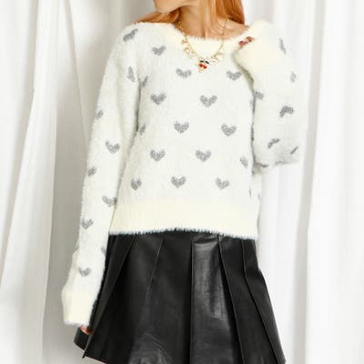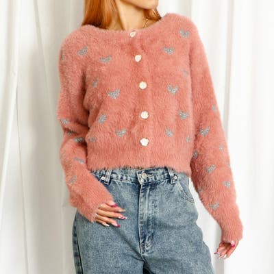 トップス ニット カーディガン ハート 2WAY フェザー ショート丈 韓国ファッション 2431099