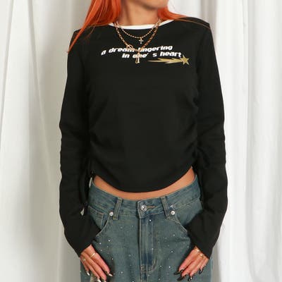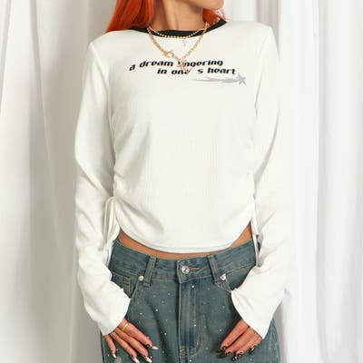 程よく身体にフィットするシルエットで、スタイルを美しく際立たせるトップス。柔らかなテレコリブ素材が快適な着心地を実現。ウエストのサイドにあしらわれたギャザーで、自由にシルエットを調整可能。メタリックなロゴデザインがアクセントになり、カジュアルにもスポーティーにも着回せる一着。お手持ちのベーシックなスカートやデニムにはもちろん、トレンドのY2Kコーデにもぴったりのアイテム。