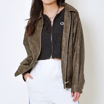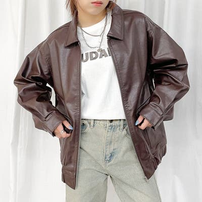 即エッジィなスタイリングが叶うビッグシルエットブルゾン。フェイクレザーなのでお手入れも楽々◎カジュアルコーデにはもちろん、キレイめコーデ、古着テイストにもぴったりマッチ☆幅広いスタイリングが楽しめるアイテムです♪
