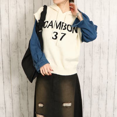 トップス パーカー ニット ロゴ 袖デニム カジュアル 秋 冬 異素材 2445112