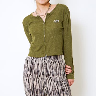 こなれ感のあるピグメント加工と、さりげない刺しゅうデザインがポイントのWジップカーディガン。羽織るだけでカジュアルな抜け感を演出できる一枚です。