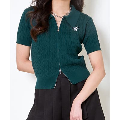 《ダブルジップ×ロゴ刺繍》ストリートニットトップ/WZIPカーデ