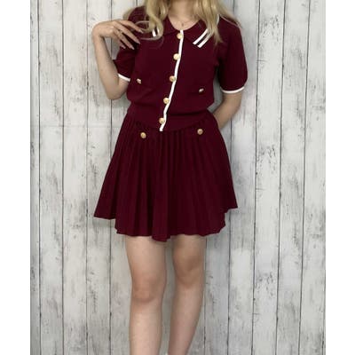 トップスは、パイピングラインがアクセントになった配色デザイン。フロントや袖口、ポケットに施された金ボタンが華やかさをプラスし、さりげない高級感を演出します。スカートはプリーツ仕様で動くたびに軽やかに揺れ、女性らしい印象に。上下で統一感がありながら、それぞれ単品でも活躍してくれる優秀アイテムです◎
