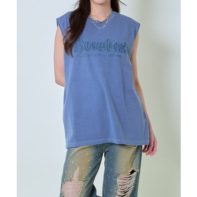 ビンテージライクな風合いが魅力のピグメント加工を施したノースリーブトップス。フロントには立体感のあるロゴ刺繍が施され、1枚で存在感たっぷりの仕上がりに。ほどよくゆとりのあるシルエットでリラックス感がありつつも、スタイリッシュに着こなせます。アームホールも広めで、インナーとのレイヤードも楽しめるデザインです。