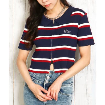 ワンポイント刺繍が大人可愛い♪WZIPボーダー半袖カーディガン
