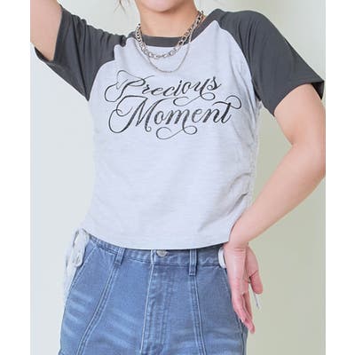 《ラメロゴ×ドロスト》レディース 半袖Tシャツ サイドギャザー