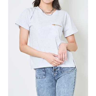 すっきりとしたVネックで、大人っぽくスマートな印象に。胸元には小さなポケットがあり、そこに施されたジッパーが程よいアクセントに。シンプルなTシャツながら、ディテールにこだわることで個性を演出してくれます!