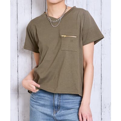 《ZIP付きポケT》Vネックカットソー/こなれ感プラス